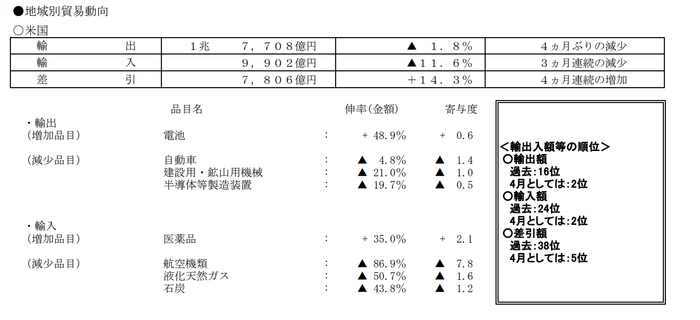 日本财务省5月21日公布的4月贸易统计初值显示正版炒股软件,对美国出口较上年同期下滑1.8%至1.7708万亿日元(约合人民币887亿元),4个月来首降。按具体品目来看正版炒股软件,汽车出口下滑4.8%,建设用、矿山用机械和半导体等制造装置出口也同比走低。